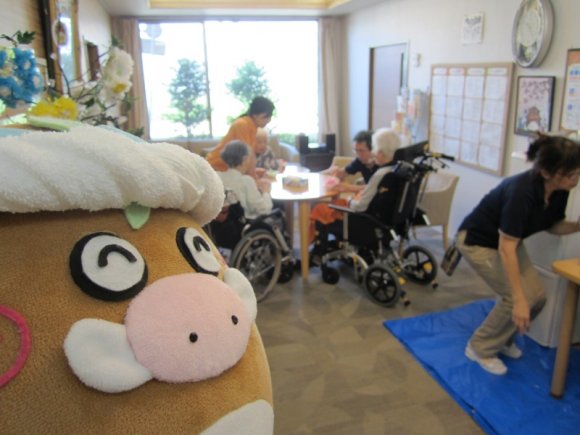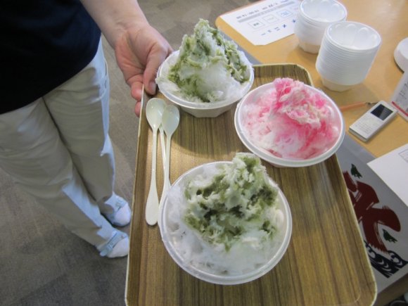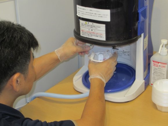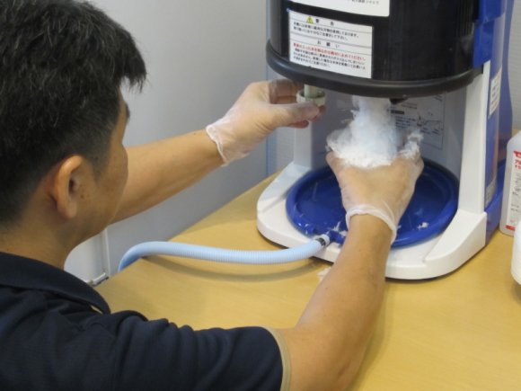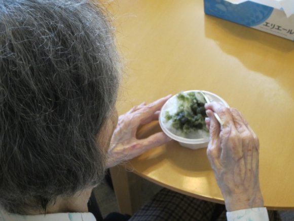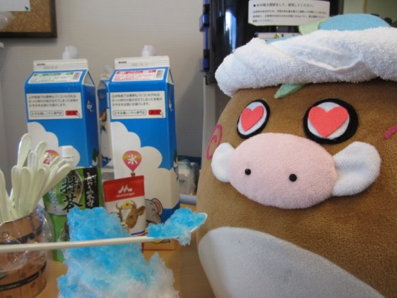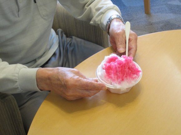 2018年08月29日(水) かき氷イベント 今日は待ちに待ったかき氷だぷ~ 外はすごく暑くて絶好のかき氷日和 とても楽しみでテンション上がるぷ~ すごく大きな氷だなぁ こんな大きな氷使うんでぷね~ こんな本格的な機械使って作るんでぷね~ 施設長真剣に作ってますね~ よ~し、僕もお手伝い頑張るぷ~ 抹茶ミルクといちごミルクの出来上がり~ 美味しそうでぷね~ わーい 僕もブルーハワイもらっちゃった~ 美味しそう~ いただきまーす 頭がキ~ンと・・・ みんな美味しそうに食べてますね~ 今年は残暑も厳しそうです。 皆さま体調には気をつけてくださいね。