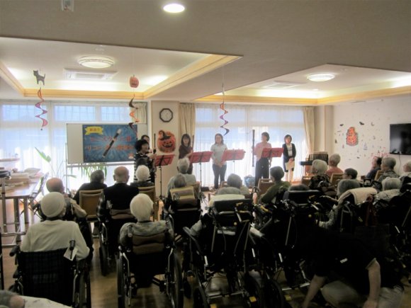 2018年10月31日(水) リコーダー演奏会 今日はリコーダー演奏会のお話をするぷ~ ローズウッドさんがかざぐるまに来てくれたぷ~ みんな真剣にローズウッドさんの話を聞いているぷ~ 演奏が始まると笑顔で楽しく聞いているぷ~ ぼくも練習をしてみたぷ~ 難しいぷ~ 音が出せると楽しいぷ~ ローズウッドのみなさん、素敵な演奏をありがとうございました。 とても楽しかったです。ありがとぷ~