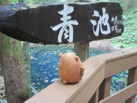 湧水のため、透き通り青いらしいが、季節により色が変化するそうです