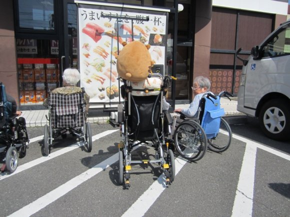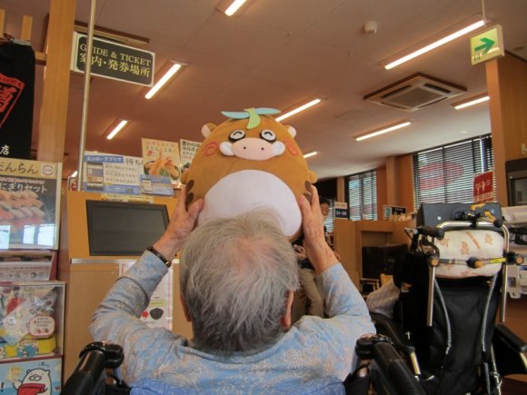 いのぷーも「まだか!まだか!」と、ちゃっかり車いすに便乗して早くも臨戦態勢です