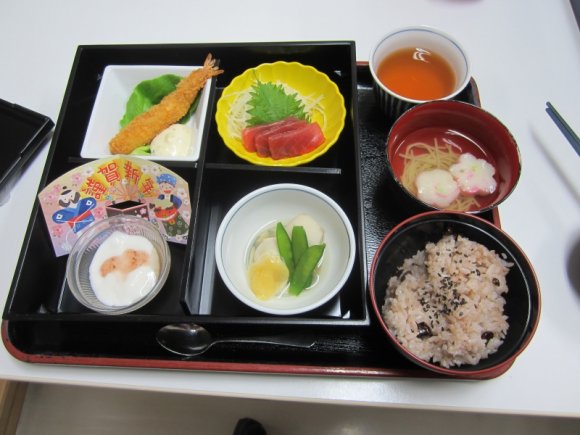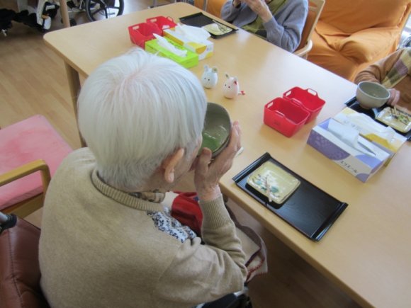 2020年01月12日(日) 皆様 あけましておめでとうございます!本年もどうぞ宜しくお願い致します! 2020年1月1日元旦 午前は初釜を行いました! 7種類の生菓子とお抹茶を入居者様に召し上がって頂きました! 「とっても美味しゅうございました」という言葉が聞けてスタッフ一同「今年も頑張ろう」と気持ちを新たに致しました。 昼食には「松花堂弁当」を召し上がられました。 皆様とてもいい笑顔でした。 午後からは門松と一緒に記念写真を撮りました。 ある入居者様は「今年も元気で美味しい物をたくさん食べれますように!」と思ったそうです。