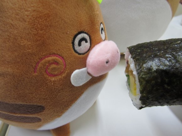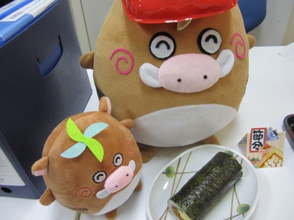 ちび いのぷーも 一緒に 恵方巻きを食べるぞ~