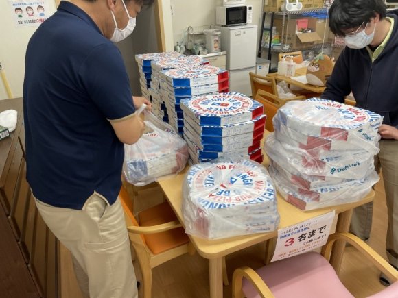 ドミノピザ社台店の皆様が持ってきてくださいました。