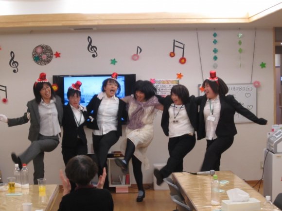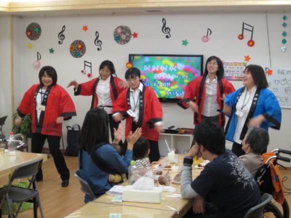 ようかい体操を歌って踊っているスタッフ達を発見
