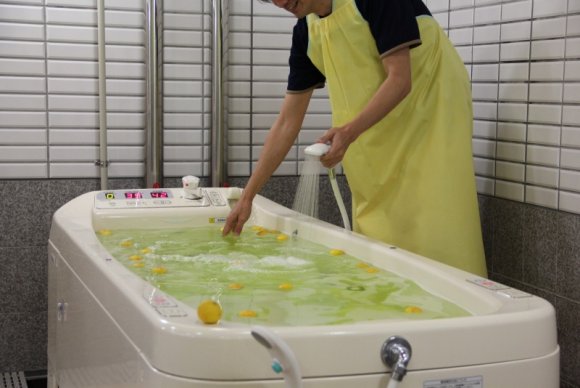 2015年12月22日(火) 冬至 今日12月22日は冬至です 今年もあと10日で終わりですね、あっという間の一年でした かざぐるま名東では恒例のゆず湯を実施しています 皆様が入浴中のお写真は公開できませんので 雰囲気だけでもお伝えしました