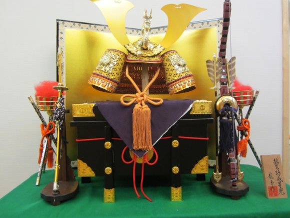 四月の中旬から施設1F入口付近にかぶとを飾りました。