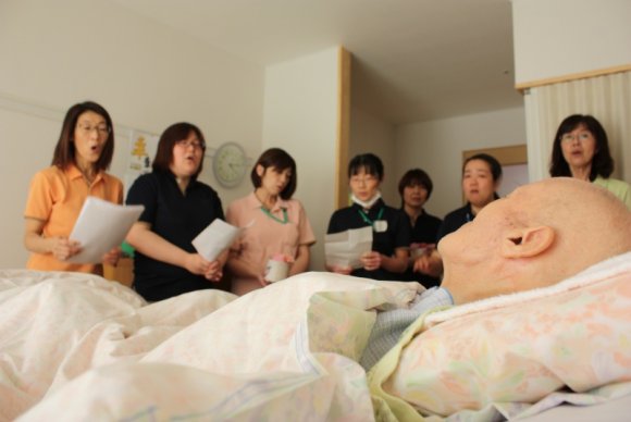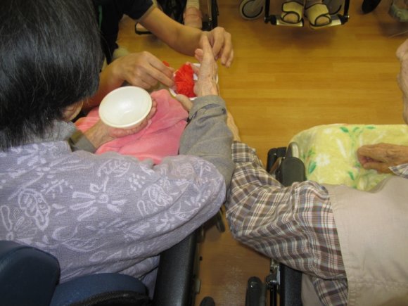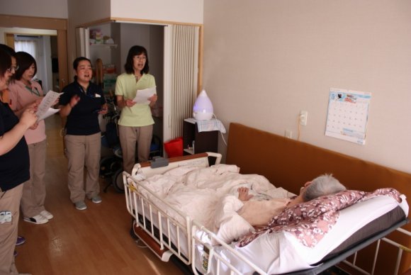 参加できなかった二階の方々には、お部屋にて合唱とお花のプレゼントをさせていただきました