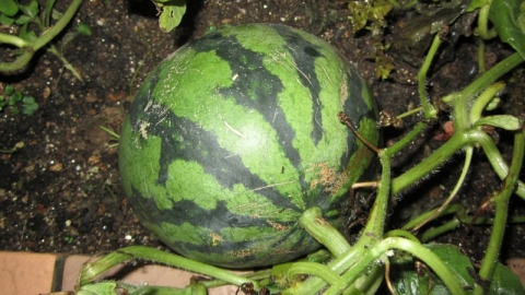 かざぐるまの花壇にいつのまにかすいかの芽がでました。 すくすく育ち、バレーボールくらいの大きさになりました。 が、これ以上大きくならず。 ここでカット。 食べたらみずみずしく、美味しく頂きました。 来...