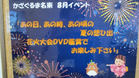外は、暑くてもかざぐるま名東の中は適温で過ごせています󾮔 各フロアでゆっくりと日本全国の花火大会のDVDを鑑賞されました󾠓 DVDの中には、各地のお祭り風景があり楽しまれた様子でした...